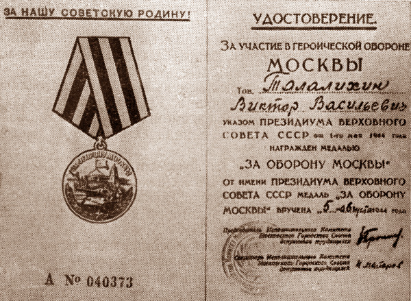 2 сентября 1941 года в Кремле председатель Президиума Верховного Совета СССР Михаил Калинин вручил Виктору Талалихину грамоту о присвоении звания Героя Советского Союза, орден Ленина и медаль «Золотая Звезда».